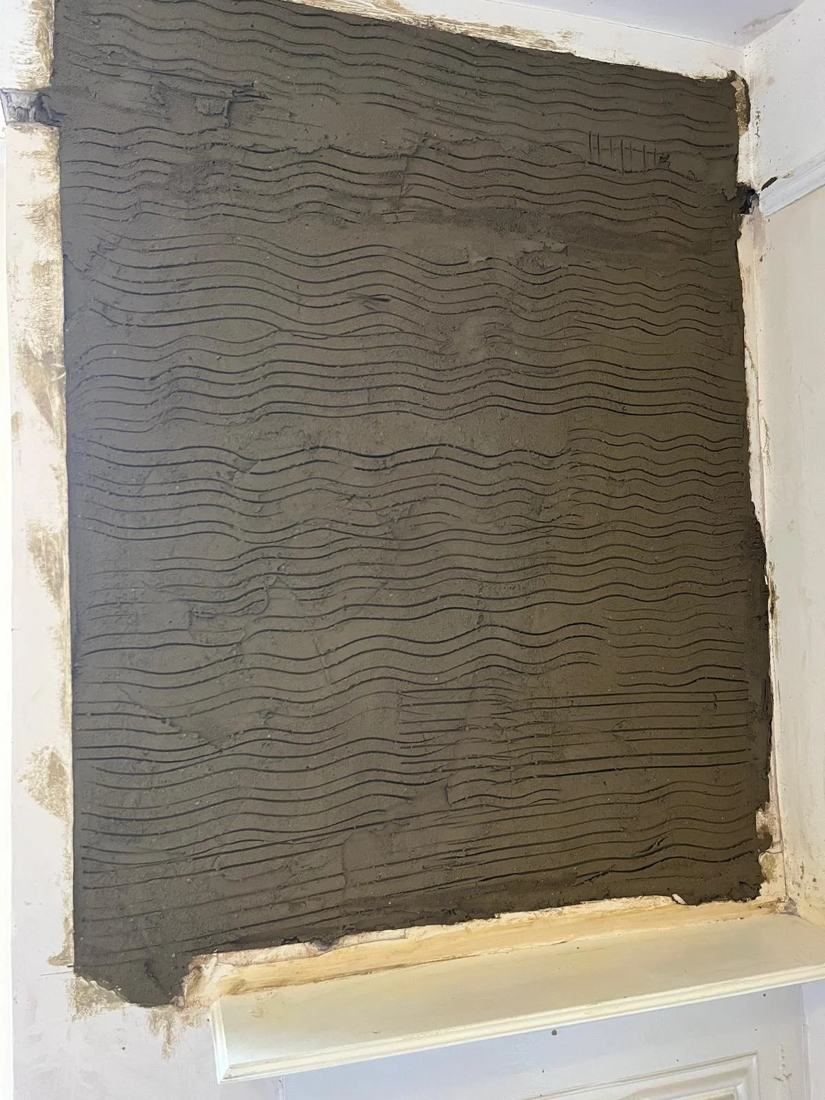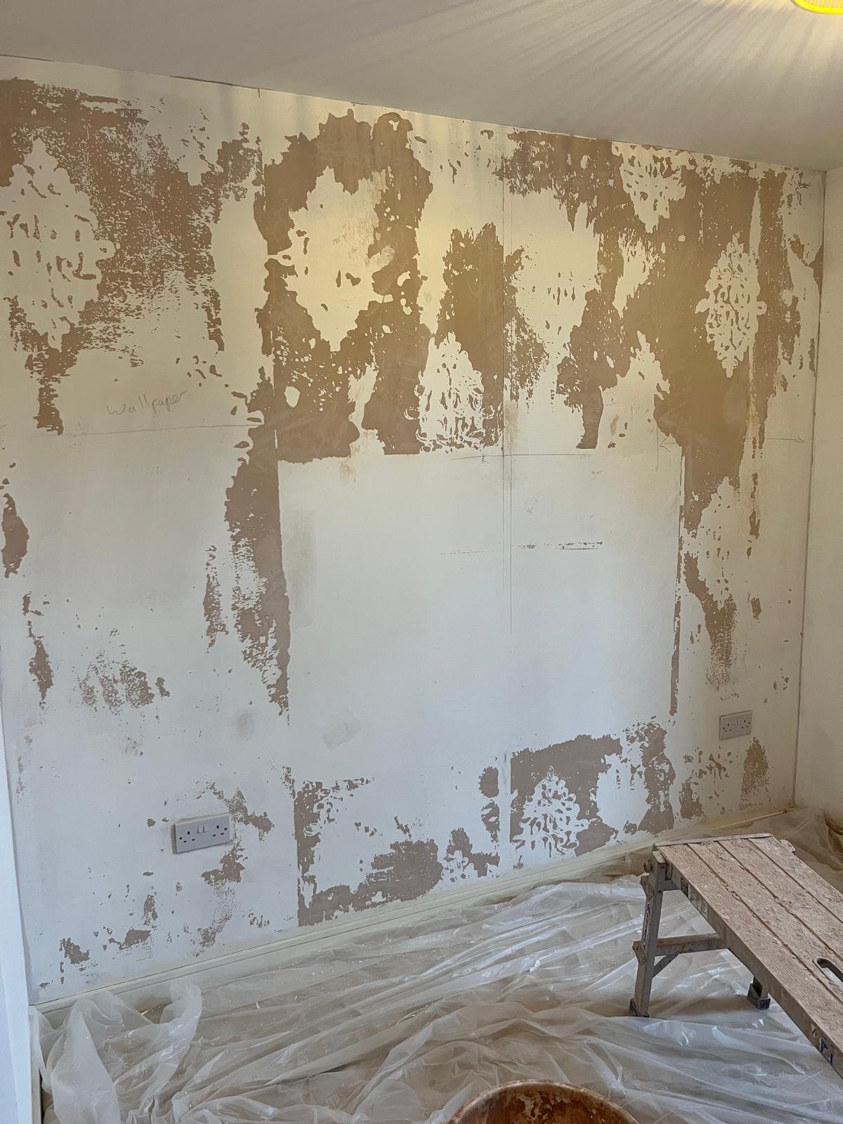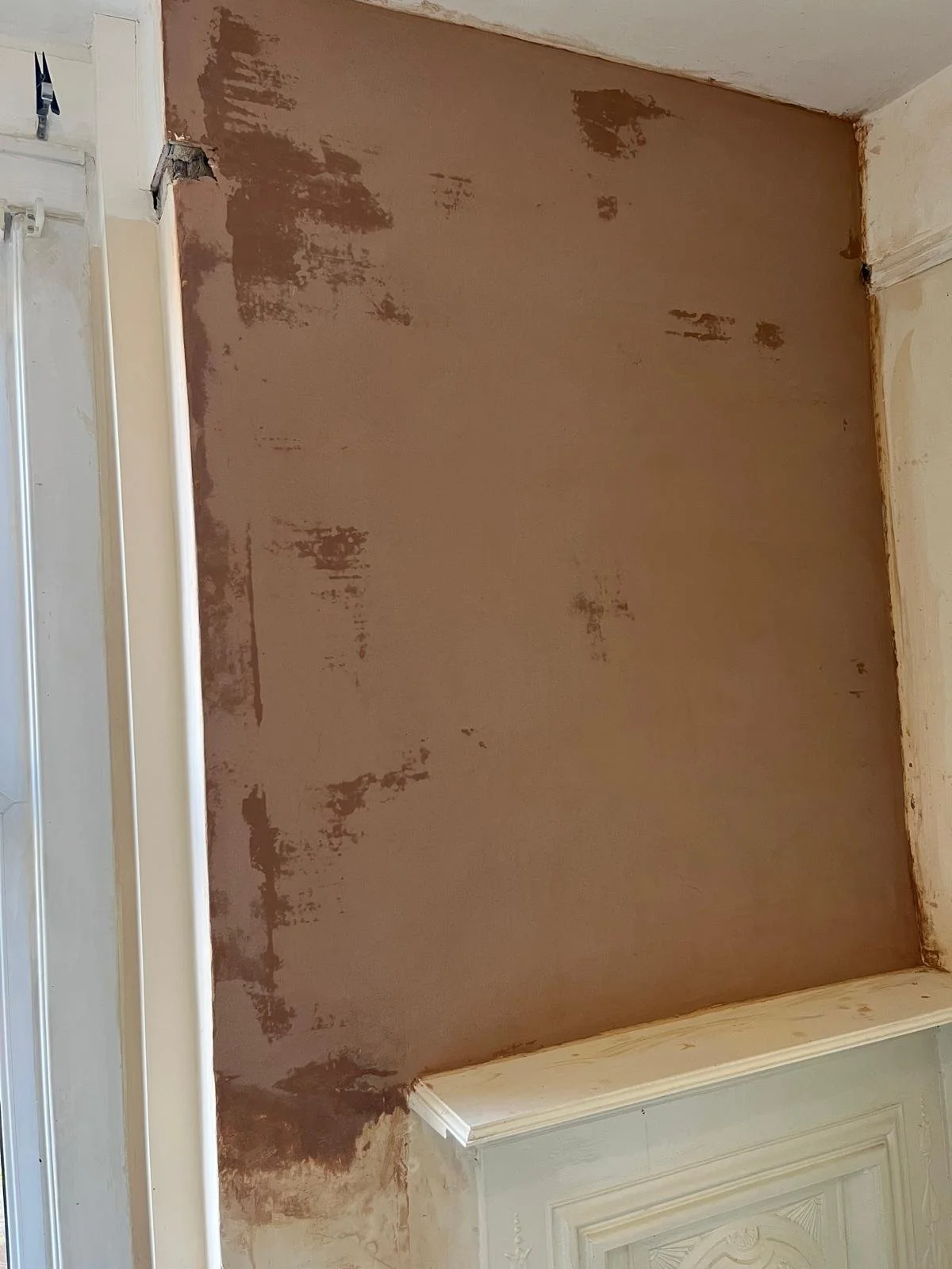 Plaster damage repaired and the area re‑skimmed to a smooth, paint‑ready finish.